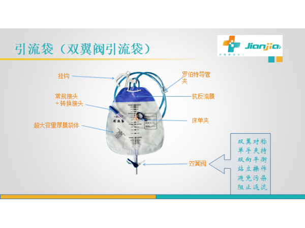 產(chǎn)品說明:產(chǎn)品描述適用范圍:供臨床收集和儲存引流使用產(chǎn)品特點:1:內(nèi)置抗反流閥裝置,可防止尿液返流,有效降低逆行感染率;2:十字型排