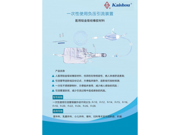 產(chǎn)品說明:一次性使用術(shù)后負壓引流管裝置VI型VIII型 Ⅲ型V型中采用進口醫(yī)用硅膠,生物相容性好,空間政策好。適用科室:神外、普外、肝膽、