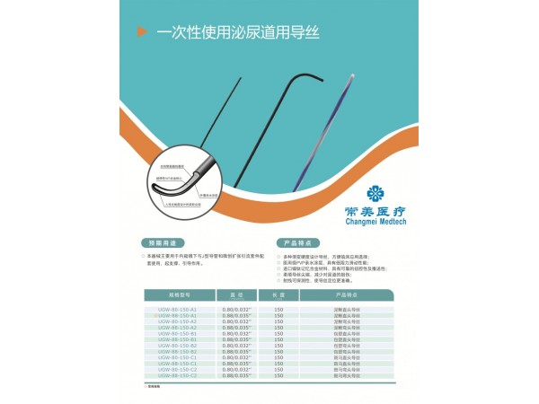 產(chǎn)品說明:一次性使用泌尿道用導(dǎo)絲分泥鰍型導(dǎo)絲、包塑型導(dǎo)絲和斑馬型導(dǎo)絲三種。泥鰍型 導(dǎo)絲由芯絲(NiTi)和包塑涂層(PU、鎢、親水涂層)