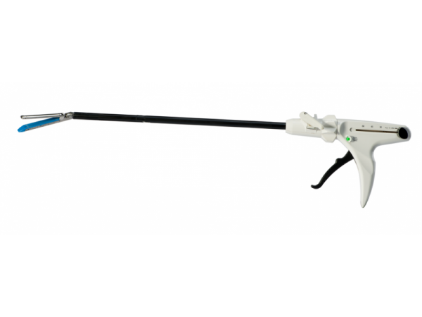 產(chǎn)品說明:四排縫合釘成弧形排列,中間一把弧形切割刀。盆腔空間狹窄,弧形切割縫合更利于手術(shù)效果。手術(shù)視野大,便于操作。同一把器械,在