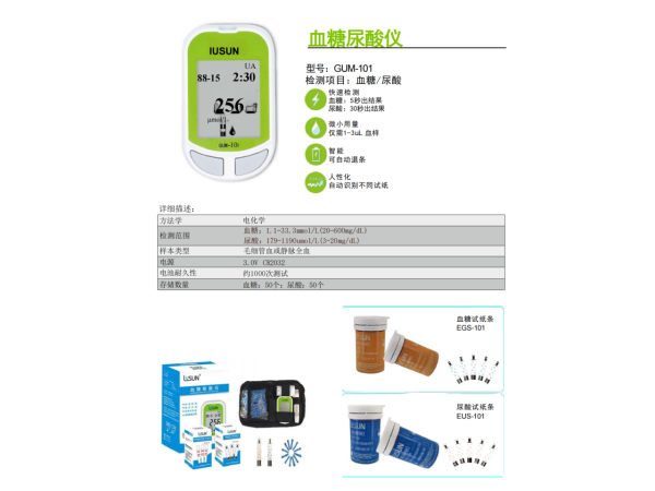 產(chǎn)品說明:1.10秒快速測量,插入試紙,僅需10秒,即可得出精準(zhǔn)血糖數(shù)據(jù),高效安全2.免設(shè)碼,,不調(diào)試,傻瓜式操作,老人也能輕松使用3.醫(yī)院