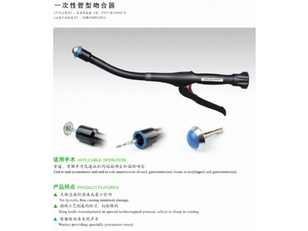 產(chǎn)品說(shuō)明:臨床用于食管,胃,腸等消化道重建手術(shù),端端,側(cè)側(cè),端側(cè)吻合器適應(yīng)癥:適用于人體食道、胃及腸等消化道組織的端端吻合、端側(cè)吻