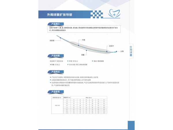 產(chǎn)品說明:本產(chǎn)品適用于外周血管狹窄病變擴(kuò)張和血管內(nèi)支架后擴(kuò)張,也適用自體或人造透析用動(dòng)靜脈瘺阻塞性病變的擴(kuò)張。