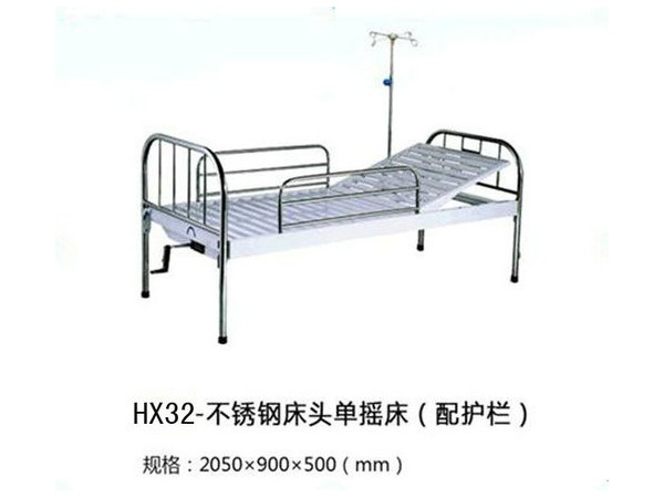 產(chǎn)品說明:YK-A-016不銹鋼床頭條式單搖床1.不銹鋼管制床頭床尾,床尾裝有病歷卡。?床框采用不銹鋼焊接而成,堅(jiān)固耐用,美觀大方。2.床面靜電噴塑,抗老化,不生銹,外觀美觀平整、端正、四角...