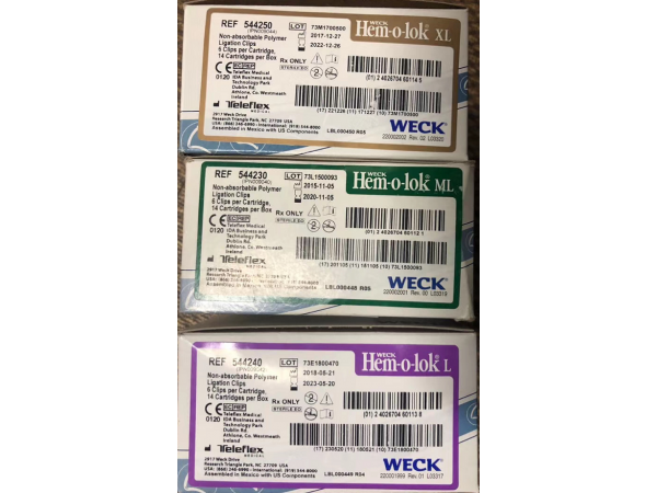 產(chǎn)品說明:威克 Hem-o-lok結(jié)扎夾產(chǎn)品描述:包裝6只*14條/盒544230中大號-綠色544240大號-紫色 544250加大號-金色 有效期5年使用范圍 Hem-O-