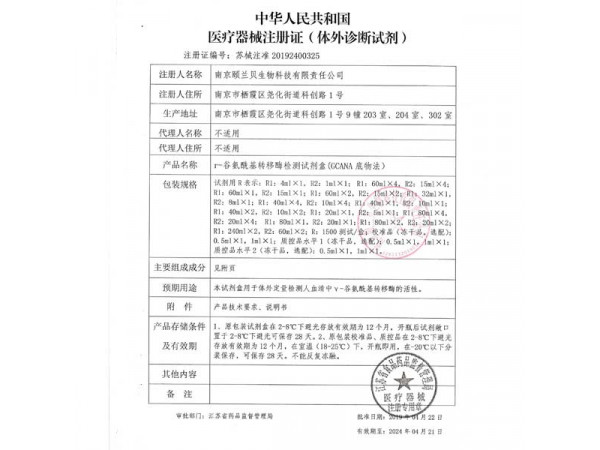 產(chǎn)品說(shuō)明:注冊(cè)證編號(hào)蘇械注準(zhǔn)20192400897注冊(cè)人名稱南京頤蘭貝生物科技有限責(zé)任公司生產(chǎn)地址南京市棲霞區(qū)堯化街道科創(chuàng)路1號(hào)9幢203室、204