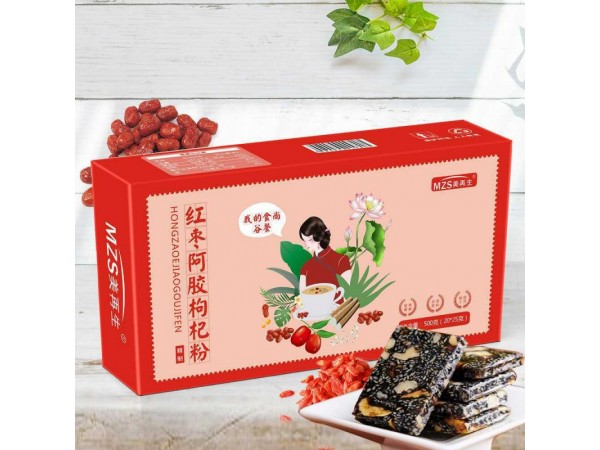 產(chǎn)品說(shuō)明:品名:紅棗阿膠枸杞粉(固體飲料)配料:紅棗、紅豆、山藥、阿膠、枸杞、低聚果糖凈含量:500克(20*25克)貯存條件:置陰涼、通