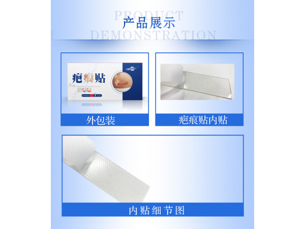 產(chǎn)品說明:【產(chǎn)品名稱】疤痕貼【結(jié)構(gòu)組成】本品由背襯層、硅凝膠層及防粘層組成。背襯層為聚氨酯薄膜,硅凝膠層為硅凝膠,防粘層為聚乙烯防