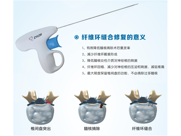 產(chǎn)品說明:纖維環(huán)縫合器腰椎纖維環(huán)縫合術(shù)屬于腰椎微創(chuàng)手術(shù)后附加的一種微創(chuàng)手術(shù),用以降低腰椎微創(chuàng)手術(shù)后的復(fù)發(fā)率,保證其長期療效。腰椎微