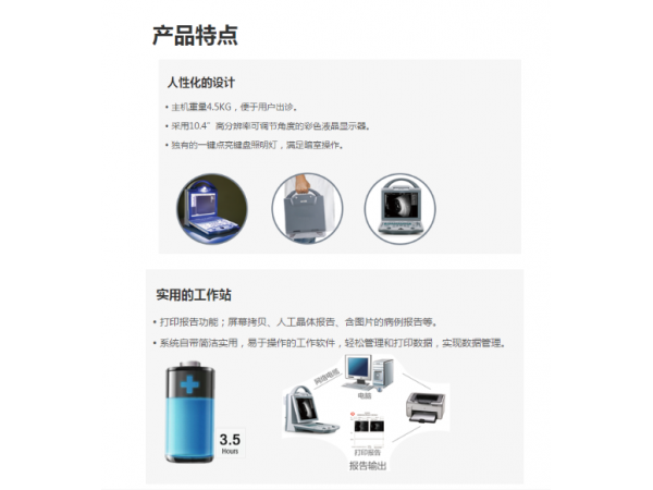 產(chǎn)品說(shuō)明:產(chǎn)品特點(diǎn)人性化的設(shè)計(jì)? 主機(jī)重量4.5KG,便于用戶出診。? 采用10.4”高分辨率可調(diào)節(jié)角度的彩色液晶顯示器。? 一鍵點(diǎn)亮鍵盤照明