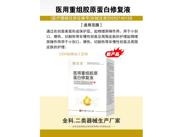 產(chǎn)品說明:醫(yī)用重組膠原蛋白修復(fù)液注冊證號:吉械注準(zhǔn):20252140484規(guī)格:10g/盒適用范圍:通過在皮膚創(chuàng)面表面形成保護(hù)膜,修復(fù)皮膚屏障,