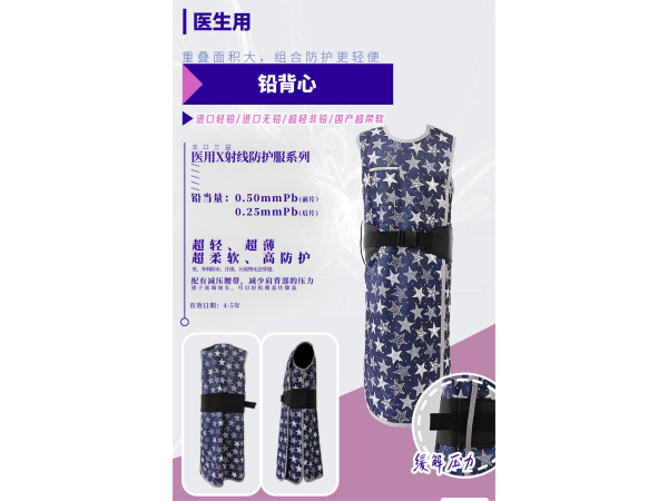 產(chǎn)品說明:用于放射診斷時(shí)對人體的防護(hù)。面料:舒服、結(jié)實(shí)、耐磨、防水、防靜電、易于清潔消毒,具有很強(qiáng)的抗腐蝕、耐強(qiáng)健性能,可以抗碘伏