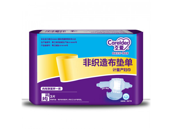 產(chǎn)品說明:本產(chǎn)品由墊巾和彈簧秤組成,墊巾是由聚乙烯塑料薄膜、木棉、薄型粘合法非織造布加橡皮筋條、扣子組成。用于產(chǎn)婦分娩后做護陰部護