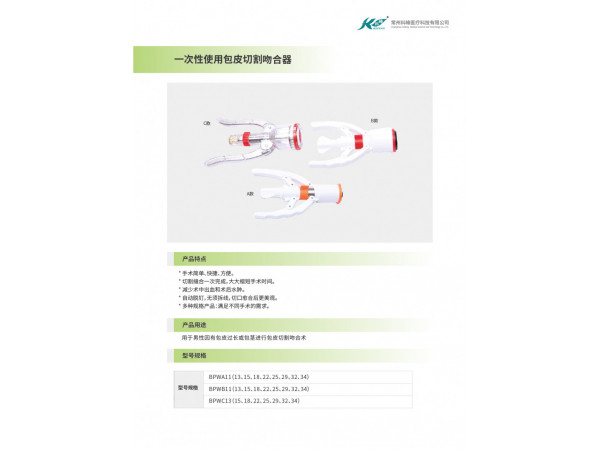 產(chǎn)品說明:包皮吻合器是應(yīng)用于包皮環(huán)切手術(shù)的輔助器械,它由于手術(shù)操作簡單、手術(shù)時間短、切緣整齊、術(shù)后包皮水腫輕、恢復(fù)快等優(yōu)點而得到廣