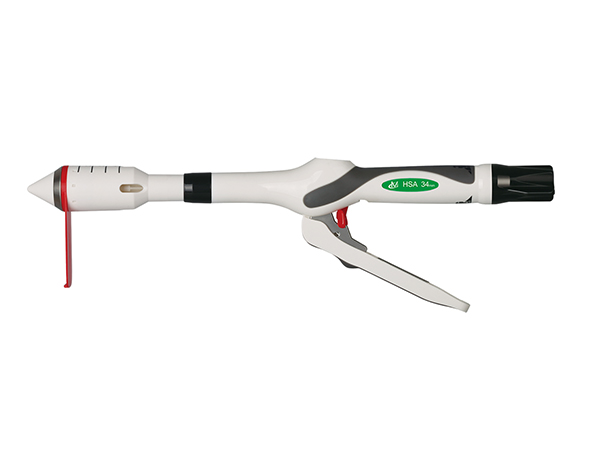 產(chǎn)品說明:HSA型痔吻合器主要由抵釘座 、墊刀圈、釘倉套、鎖圈、活動手柄、保險塊、調(diào)節(jié)螺母、推片、釘倉、環(huán)形刀和吻合釘組成HSB型痔吻合