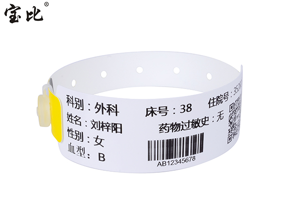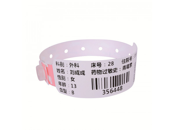產(chǎn)品說明:1.實用的防偽封口設(shè)計,一次性使用,保證病人識別的唯一性;2.防水防酒精,避免因汗?jié)n和濕水等導(dǎo)致文體模糊;3.采用特殊環(huán)保材料