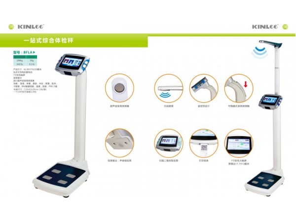 產(chǎn)品說明:7寸彩色觸摸屏,語音提示,進口超聲波身高探測器,可測身高、體重、脂肪、水份、骨重、肌肉、卡路里,BMI健康指數(shù),溫度,濕度,