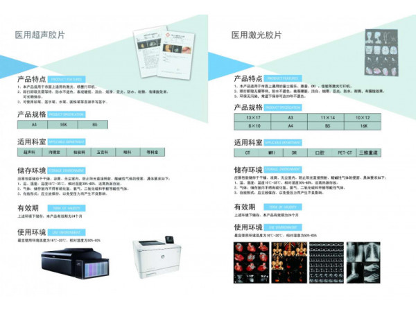 產(chǎn)品說明:醫(yī)用彩色膠片適用于醫(yī)院CR、DR、MRI、CT、DSA等醫(yī)用成像設(shè)備的成像及A超、B超、C超、M超彩色照相膠片、圖文報告、波拉片及病理科