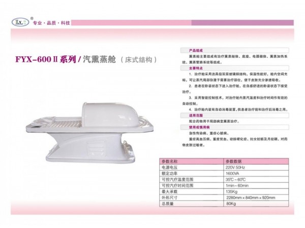 產(chǎn)品說明:福源熏蒸艙是專為推廣溶液汽療、提升溶液汽療的應(yīng)用價值而研發(fā)的產(chǎn)品。溶液汽療又叫溶液熏蒸,是用溶液煎煮產(chǎn)生的蒸汽來熏蒸人體