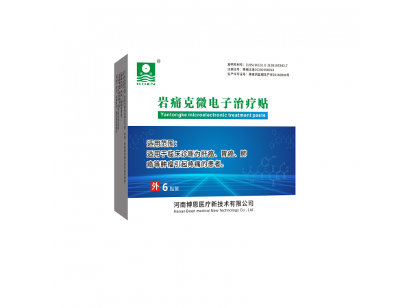 產(chǎn)品說(shuō)明:一、全國(guó)獨(dú)家?guī)酒b置的腫瘤動(dòng)態(tài)止痛貼劑。二、榮獲兩項(xiàng)國(guó)家發(fā)明專(zhuān)利和一項(xiàng)實(shí)用新型專(zhuān)利:《一種用于癌癥鎮(zhèn)痛的磁藥貼》、《一