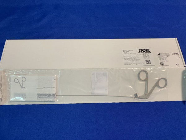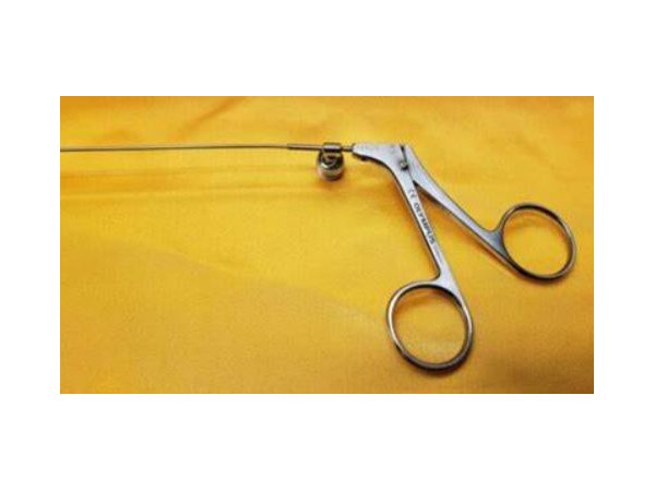 產(chǎn)品說明:剪刀,45°上彎,單動(dòng)鉗口。鞘從遠(yuǎn)端到近端逐漸增粗,末端10°上彎。