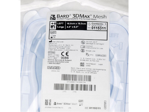 產(chǎn)品說明:名稱:美國巴德疝修補(bǔ)補(bǔ)片0115310型號:0115310產(chǎn)地:美國品牌:巴德規(guī)格:中號,左向8.5cm*13.7cm,包裝數(shù)量:1片/盒結(jié)構(gòu)及組成