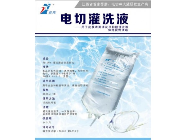 產(chǎn)品說明:鑫隆牌電切灌洗液用于術(shù)中沖洗泌尿外科前列腺汽化電切鏡,婦產(chǎn)科宮腔電切鏡。電切灌洗液用于各種經(jīng)尿道手術(shù)腔道內(nèi)沖液;保持手術(shù)