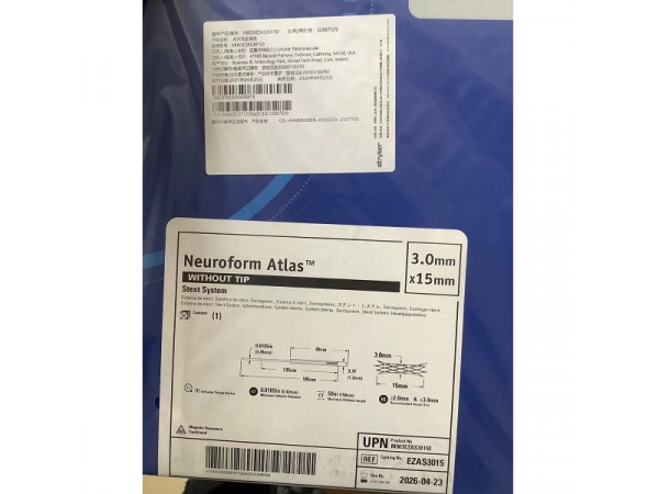產(chǎn)品說明:產(chǎn)品名稱:顱內支架系統(tǒng)Neuroform Atlas Stent System規(guī)格型號:M003EZAS30150單位:套包裝:1套/盒結構及組成:該產(chǎn)品由自擴張