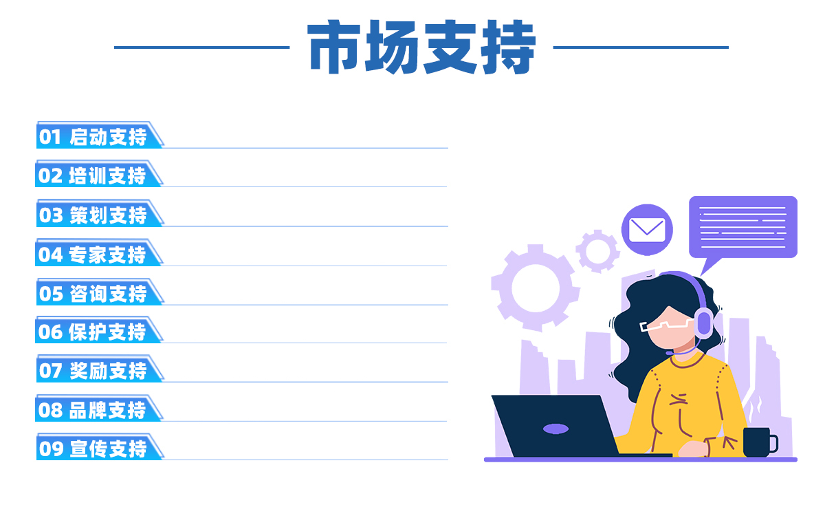 營(yíng)銷(xiāo)技巧賦能,產(chǎn)品知識(shí)專(zhuān)業(yè)講解,市場(chǎng)運(yùn)作精細(xì)化指導(dǎo) 提供各階段市場(chǎng)運(yùn)作策劃方案和大型活動(dòng)方案 專(zhuān)家團(tuán)隊(duì)開(kāi)設(shè)直播講座、在線解答,線下診療 全國(guó)統(tǒng)一服務(wù) 電話 規(guī)范市場(chǎng)管理,保護(hù)經(jīng)銷(xiāo)商利益 會(huì)員轉(zhuǎn)化獎(jiǎng)勵(lì),二次開(kāi)發(fā)獎(jiǎng)勵(lì),年度獎(jiǎng)勵(lì) 整店輸出方案,營(yíng)銷(xiāo)短視頻,新媒體宣傳,社群推廣內(nèi) 容輸出,宣傳物料等 百度推廣等傳統(tǒng)媒體,新媒體推廣,其他媒體宣傳 |