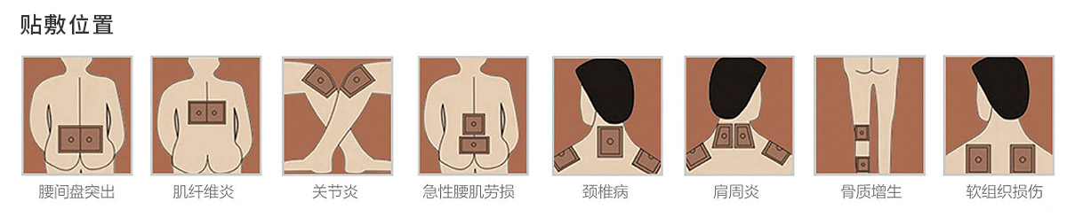 該產(chǎn)品可用于腰椎、頸椎、肩周、膝蓋、關節(jié)、腹部、足、手等全身各種不適,以及適用于促進局部血液循環(huán)、輔助消炎、消腫和止痛。