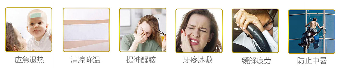 高分子凝膠含水量豐富、易吸熱帶走皮膚表面熱量安全降溫,清涼因子提神醒腦、消除疲憊、緩解壓力,柔順無紡布背襯,柔韌質輕、防潮透氣、無毒無刺激性,親膚材料無刺激、溫和親膚、粘性適中、貼敷持久。