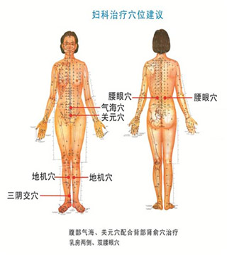 參照穴位:氣海穴、關(guān)元穴、腎俞穴、地機穴、三陰交穴、雙腰眼穴。