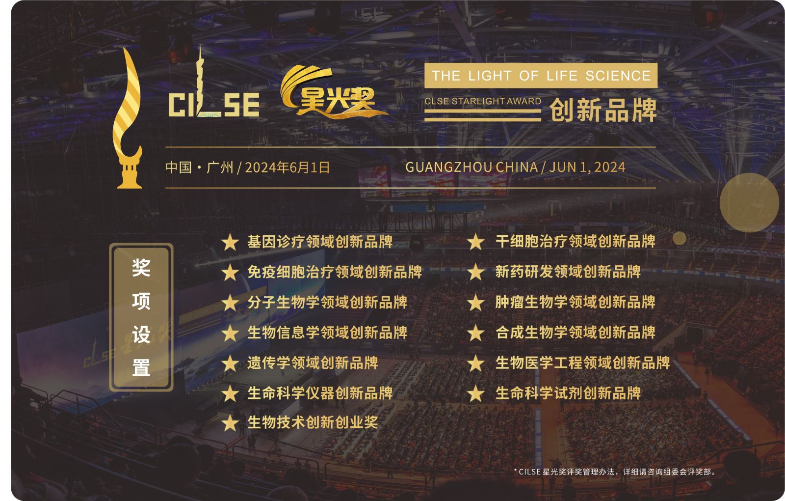 為了推動(dòng)我國生命醫(yī)學(xué)領(lǐng)域科學(xué)研究、技術(shù)創(chuàng)新與開發(fā)的發(fā)展,促進(jìn)生命科學(xué)創(chuàng)新成果推廣應(yīng)用、實(shí)現(xiàn)高新技術(shù)產(chǎn)業(yè)化,中國生命科學(xué)博覽會(huì)組委會(huì)與廣東標(biāo)桿會(huì)展有限公司決定共同設(shè)立星光獎(jiǎng),獎(jiǎng)勵(lì)源頭創(chuàng)新,加強(qiáng)國際協(xié)作,以獎(jiǎng)勵(lì)在生命科學(xué)和醫(yī)學(xué)領(lǐng)域取得突破性創(chuàng)新成果的國內(nèi)外杰出科學(xué)家及有潛力的創(chuàng)新人才和行業(yè)優(yōu)秀的領(lǐng)軍企業(yè),促進(jìn)我國生命科學(xué)、醫(yī)學(xué)、藥學(xué)及相關(guān)領(lǐng)域的科技進(jìn)步和產(chǎn)業(yè)發(fā)展,促使生物技術(shù)產(chǎn)業(yè)的領(lǐng)軍人物不斷涌現(xiàn),為推動(dòng)我國生命醫(yī)學(xué)研究、技術(shù)創(chuàng)新以及創(chuàng)新成果的產(chǎn)業(yè)化開發(fā)與應(yīng)用貢獻(xiàn)力量。