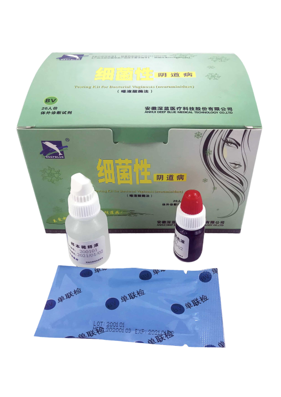 本檢測(cè)試劑盒是根據(jù)患BV的婦女陰道分泌物顯示出異常的唾液酸酶活性這一原理制成,利用一種特殊的唾液酸酶底物與BV患者陰道分泌物中存在的特異性唾液酸酶作用,可以使該結(jié)合物迅速水解,加入適當(dāng)?shù)娘@色劑后,會(huì)發(fā)生明顯的顏色變化。通過(guò)對(duì)婦科陰道分泌物中唾液酸酶的定性檢測(cè),用于細(xì)菌性陰道病的篩查。