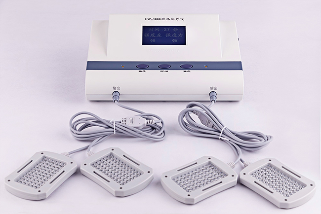 ? 1.概述: 紅外治療儀(HW-1000)是醫(yī)療機構(gòu)手術(shù)后傷口感染的預(yù)防及治療、肌纖維及軟組織炎癥 的治療儀器。設(shè)備通過紅外線照射產(chǎn)生熱效應(yīng)為原理研制。該產(chǎn)品通過發(fā)射近紅外線,穿 透到皮下5厘米處,產(chǎn)生生物學(xué)效應(yīng)。 2.?結(jié)構(gòu)組成: 產(chǎn)品由主機、治療墊及治療鞋組成。 3.適應(yīng)癥: 適用于軟組織扭挫傷恢復(fù)期、肌纖維織炎、關(guān)節(jié)炎、軟組織炎癥(癤、癰、蜂窩織炎、丹 毒、乳腺炎、淋巴結(jié)炎)吸收期、神經(jīng)痛的輔助治療。 4.禁忌癥: 出血傾向者、高熱患者、活動性結(jié)核、急性化膿性炎癥、惡性腫瘤的患者禁用。 5.工作環(huán)境: 1)工作電壓:交流220V;?電源頻率:50Hz。 2)大氣壓力:860hPa~1060hPa 3)環(huán)境溫度:0℃~40℃ 4)相對濕度:≤80% 6.性能特點: 1)光 ???源:LED半導(dǎo)體光源。 2)照射光波:近紅外線。 3)強度控制:分為零、弱、中等、強4個檔位。 4)時間控制:以分鐘計算分為4個檔位。 5)顯 ???示:液晶屏顯示。 6)聲光報警:治療結(jié)束有聲光報警。 7)運行模式:連續(xù)運行 7.療效特點: 1)發(fā)光二極管釋放的紅外線為波長850-950nm的近紅外線; 2)非激光類,每個治療墊有66個近紅外發(fā)光二極管; 3)單一波長850-950nm的近紅外線光能,能穿透到皮下5厘米處; ? ? ? ? ? ? ? ? ? ? ? ? ? ? ? ? ? ? ? ? ? ? ? ? ? ? ? ??