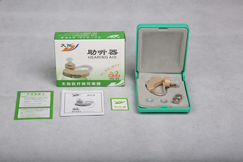 ⑤在條件許可的情況下,為聽力損失90dB以下患者先選用耳級助聽器,而對90dB以上的可考慮用盒式助聽器。