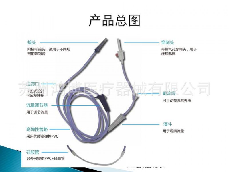 一次性使用腸內(nèi)營(yíng)養(yǎng)輸注甭管營(yíng)養(yǎng)管路產(chǎn)品說明: