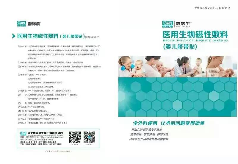 ?湖北思維康公司生產(chǎn)的醫(yī)用生物磁性敷料是屬于二類功能性敷料,產(chǎn)品主要用于外科手術(shù)后切口護理,具有止痛消腫,促進傷口愈合,減少疤痕的作用。普遍使用于手術(shù)室、普外科、急診科、產(chǎn)科、婦科、骨科、胸外科、新生兒科等科室。