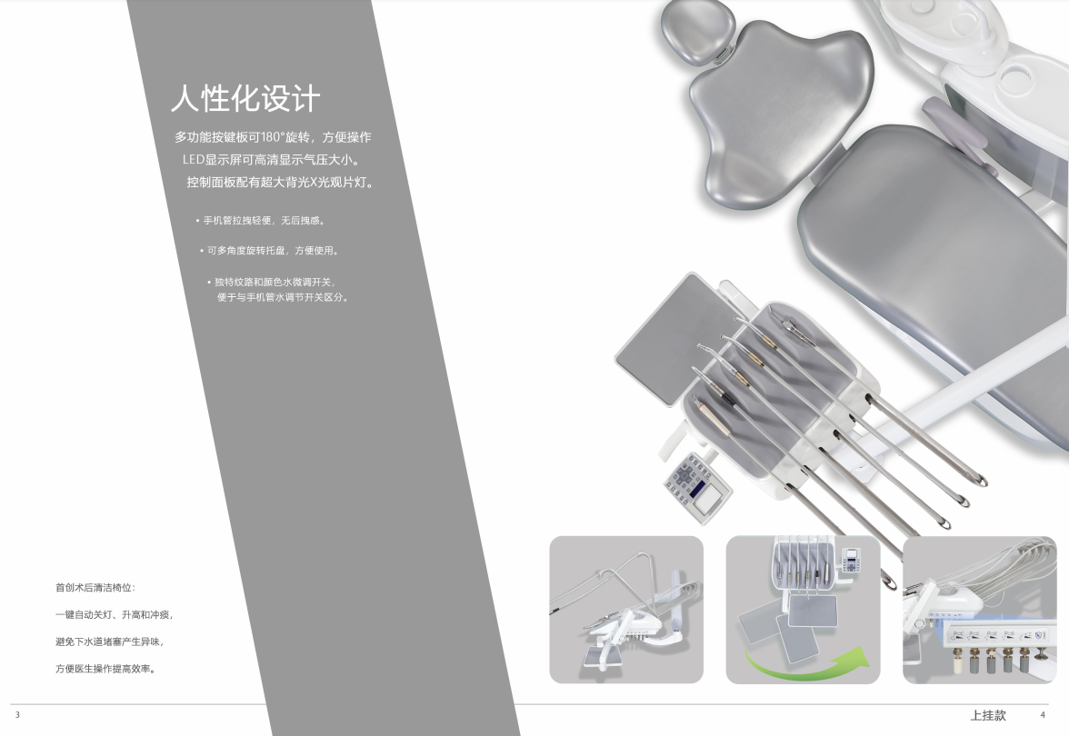 135°可旋轉(zhuǎn)大掛架,方便病人上下椅位及醫(yī)生操作