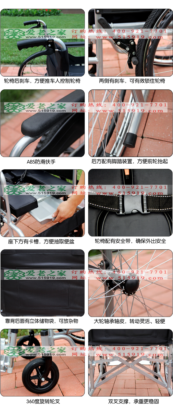 輪椅車 四剎車?yán)先苏郫B輪椅 帶坐便輕便產(chǎn)品說明: