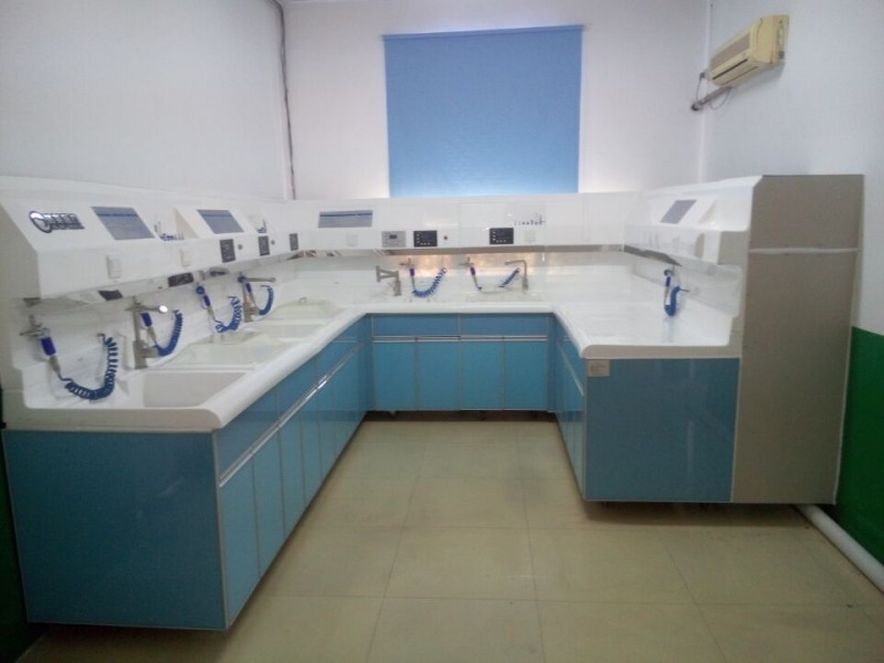 ??????? 內(nèi)鏡清洗消毒中心采用相同材質(zhì)的進(jìn)口碳纖維高分子復(fù)合材料,高溫一次性沖壓成型。高檔豪華,表面平整光滑,長(zhǎng)期使用無(wú)劃痕,無(wú)鋒角接縫,表面不易附著細(xì)菌,耐酸堿,不褪色,不易變形,清潔容易。相對(duì)醫(yī)院原有的不銹鋼材質(zhì)較柔軟,對(duì)內(nèi)鏡可起到保護(hù)作用。干燥臺(tái)面的凹凸設(shè)計(jì)可使清洗完的內(nèi)鏡能夠得到充分的吹干,同時(shí)也可以防止內(nèi)鏡的滑落。