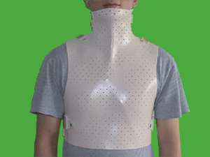 科萊瑞迪頸胸固定夾板,采用低溫熱塑板做成,重量輕、強度高、透氣性能好、不怕水、透過X射線、無毒無味、對皮膚無刺激??捎糜陬i椎損傷術后的固定:嚴重的頸椎損傷保守治療時的固定;限制頸椎旋轉;上胸椎骨折、頸椎脫位半脫位復位后固定。