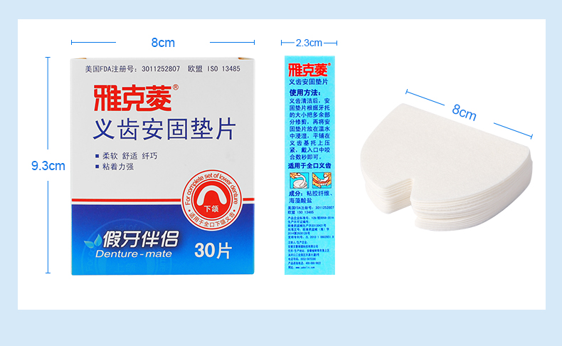 雅克菱假牙安固墊片,專門為牙床萎縮和牙槽嵴低平的老人設(shè)計(jì),能夠有效彌合假牙和牙床之間的縫隙,緩解咀嚼疼痛。目前國內(nèi)假牙護(hù)理產(chǎn)品較少,泡騰片清潔殺菌后,用義齒安固墊片,健康舒適。