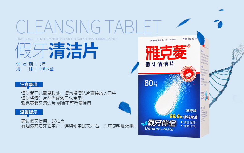 雅克菱 假牙清潔片 60片產(chǎn)品說明: