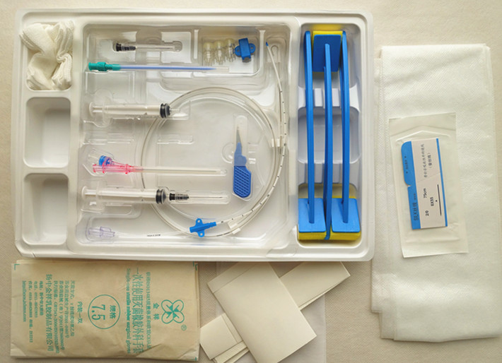 一次性使用中心靜脈導(dǎo)管包是由基本配置:一次性使用中心靜脈導(dǎo)管、導(dǎo)絲、擴(kuò)張器、穿刺針及選用配置:一次性使用無菌注射器、一次性使用無菌注射針、手術(shù)刀片、醫(yī)用縫合針、固定夾、橡膠外科手套、創(chuàng)口貼、自粘敷料、消毒液刷、醫(yī)用縫線、中單、脫脂紗布組成。產(chǎn)品經(jīng)環(huán)氧乙烷滅菌,一次性使用。