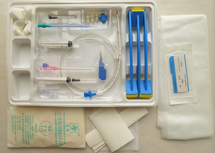 一次性使用中心靜脈導(dǎo)管包是由基本配置:一次性使用中心靜脈導(dǎo)管、導(dǎo)絲、擴(kuò)張器、穿刺針及選用配置:一次性使用無菌注射器、一次性使用無菌注射針、手術(shù)刀片、醫(yī)用縫合針、固定夾、橡膠外科手套、創(chuàng)口貼、自粘敷料、消毒液刷、醫(yī)用縫線、中單、脫脂紗布組成。產(chǎn)品經(jīng)環(huán)氧乙烷滅菌,一次性使用。