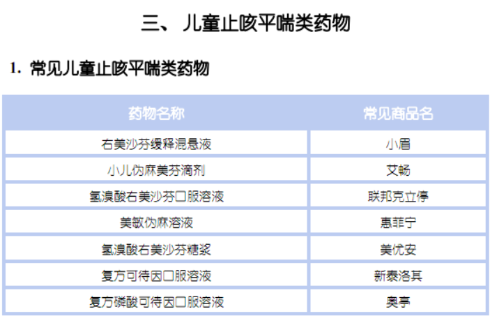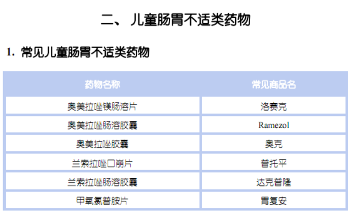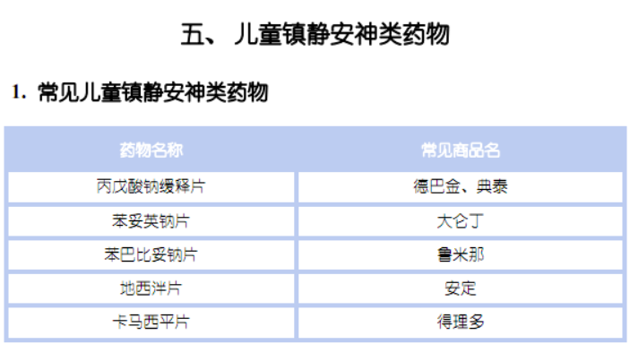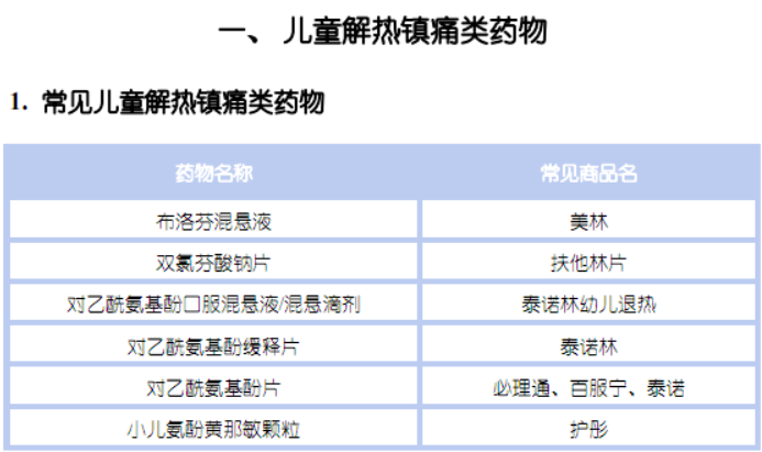 常見的五大類兒童藥物及藥品名如下: