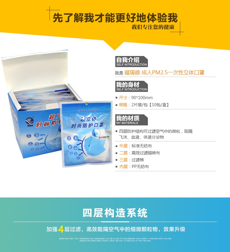 福瑞德口罩 防PM2.5防護(hù)口罩 一次性口罩廠家直銷產(chǎn)品說明: