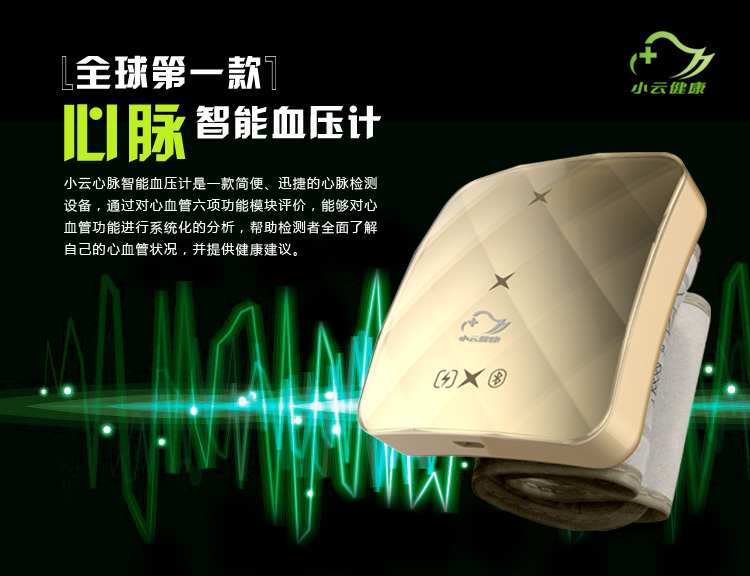 ? ? ? ? 公司研發(fā)的心血管功能檢測設(shè)備,以“小云健康”平臺為依托,打造家庭健康管理領(lǐng)域的領(lǐng)導(dǎo)品牌,致力于通過結(jié)合企業(yè)自身的優(yōu)勢和資源,幫助大家更方便、更有效地呵護(hù)自己和家人的健康。開發(fā)一系列具有自主知識產(chǎn)權(quán)的穿戴式健康檢測設(shè)備,同步建設(shè)“小云健康”在線云服務(wù)平臺,為健康人群、亞健康人群、心血管疾病人群提供健康監(jiān)測、健康分析、健康評估、健康預(yù)測等服務(wù),為用戶進(jìn)行個性化健康服務(wù)及全生命周期的大數(shù)據(jù)管理,構(gòu)建面向醫(yī)療機構(gòu)、體檢中心、企業(yè)、居民家庭、第三方相關(guān)健康產(chǎn)品銷售與服務(wù)的生態(tài)圈。