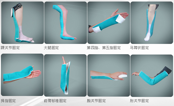 石膏夾板由大夫在術(shù)前手工制作,由于石膏凝固后,仍然具有一定的脆性,因此負(fù)重過大時(shí),可引起斷裂,導(dǎo)致骨折整復(fù)后的再移位,而高分子卷夾板有效降低患部受外力作用而再次損傷的可能性,從而有效地保障了固定的作用?!?/p>